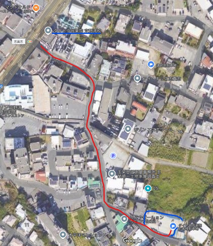 *ダイトウ音楽院と立札のある箇所8台分が指定個所です。それ以外の場所は他の契約者の方で全て埋まっています。他の方のご迷惑になりますので、指定個所以外には絶対に駐車をしないで下さい。